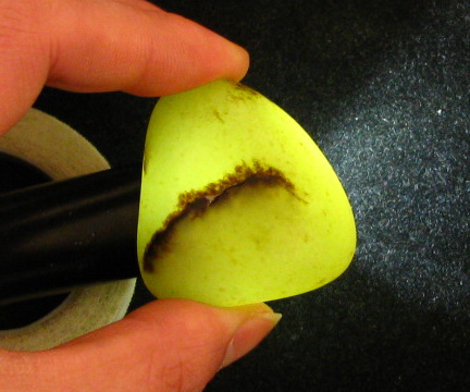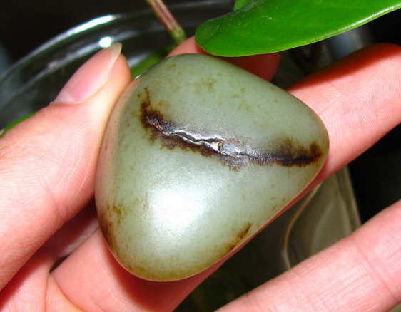轻微。肉质干净无杂质。 如图一面有个浅裂但已经沁满黑皮,如果没有皮色的话肉质会显