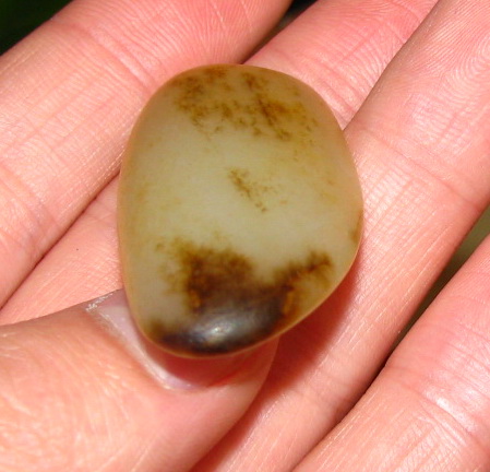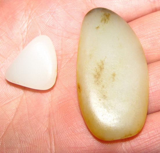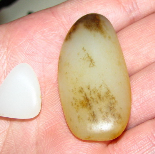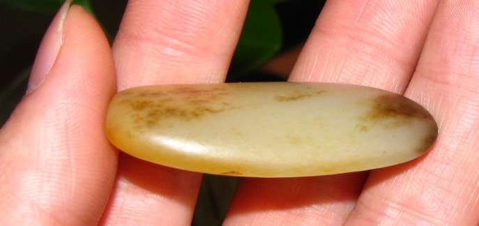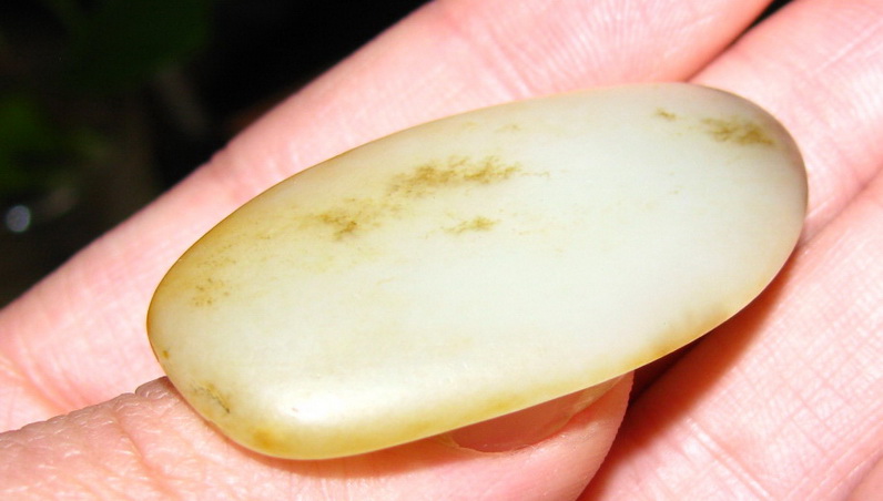 品质:白玉尺寸:48*22*8mm说明:肉质特别细腻,如图有翳糖,料型完整底部有裂,是适合巧雕