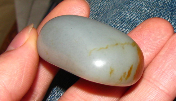 09041420---43.2克,黄皮饱满一口气白青花把件,85元 敬贤结束!