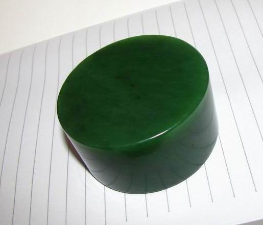 说明:颜色鲜亮,肉质细腻,如图有几个碧玉特征的黑点,如图1边侧有个很小的绺没甚影响。