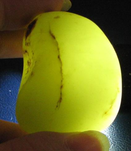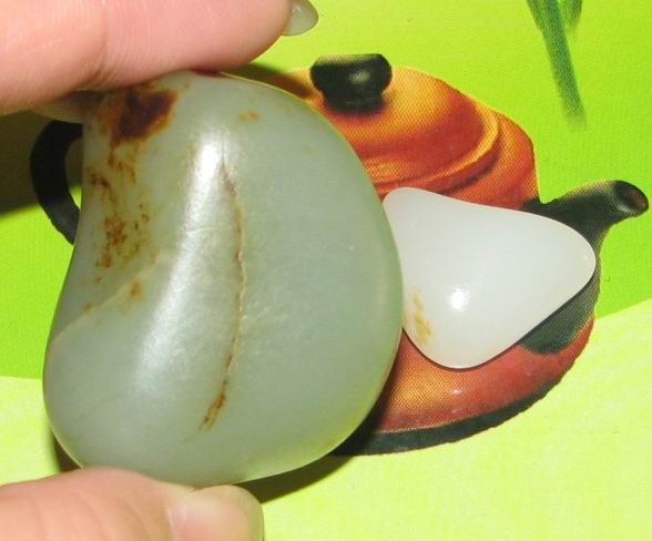 尺寸 35-31-28mm肉细,黄皮老结,形状稍扭,有裂如图。颜色正青不脏。是很不错的做料~