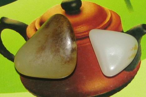 尺寸 27-26-10mm肉细,鹿皮,底部有一浆点。肉色暖黄。细润。形状饱满完整。透光照所示有一裂口不深。