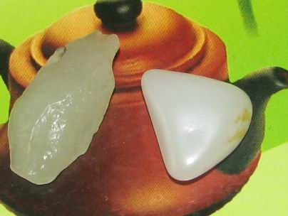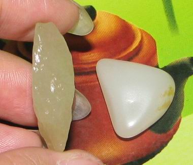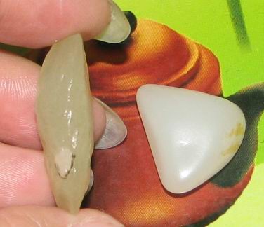 尺寸 29-15-11mm肉质细,质感油润,形状较好。色青白稍偏黄。有个小裂如图。普品,标本。注意裂里沁的黑皮色特征。