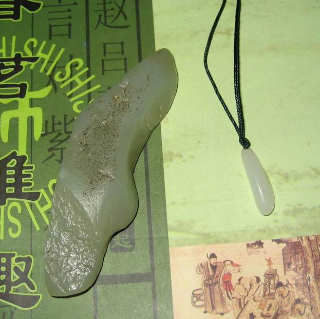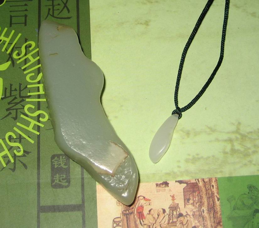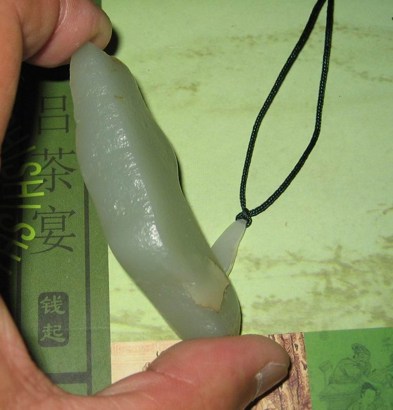 尺寸 71-18-13mm 肉质细腻,作为戈壁玉,到这么干净程度比较难得。戈壁料普遍比较油润,颜色青白,属于且末种青白玉。这种青白的料子做活后会更白一点,就是所谓的“脱青”。表面挂很细很薄的风吹黑皮。一侧稍有小裂如图。可直接把玩,也可以做活用。
