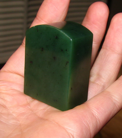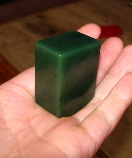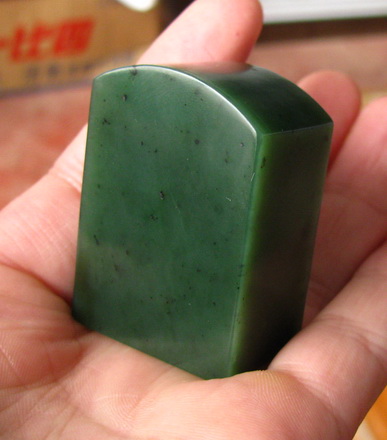 说明:肉质细腻,色泽均匀,基本没有水线,就成色和肉质在和田碧玉山料中是比较难得的,没有裂伤。