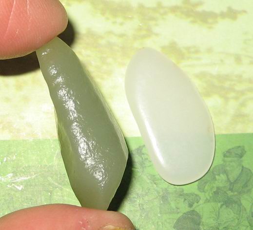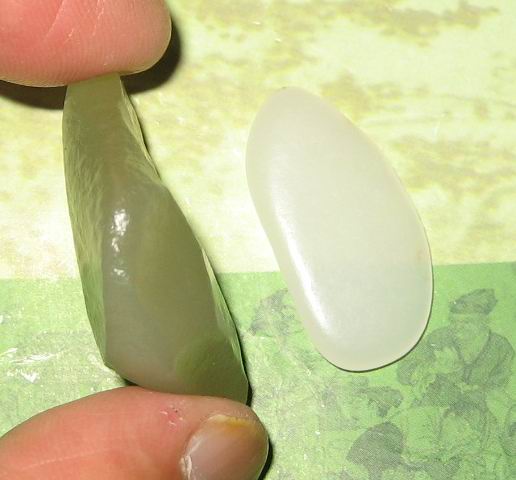 肉质细腻,干净,油润,整体饱满,表皮细腻,基本无裂伤,玉质颜色为青白,色正,不闷,可直接佩戴。