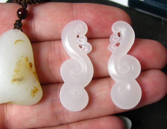 品质:和田玉青海羊脂玉尺寸:38-13-4mm说明:肉质干净,白度很好,没有水线浆点,质地均匀,做工不错。可以镶金做个精品