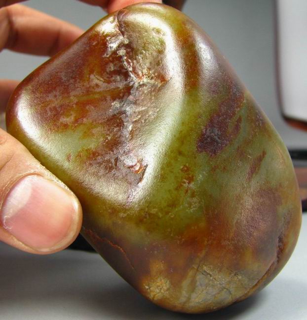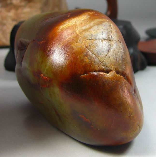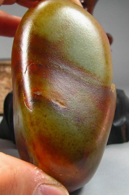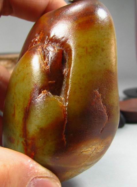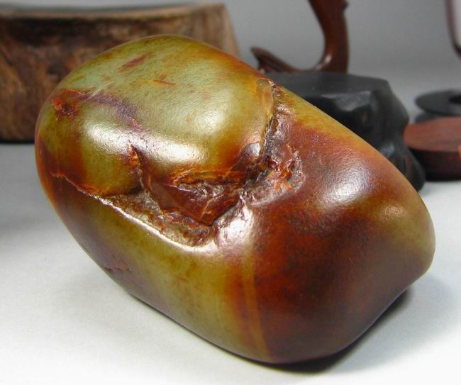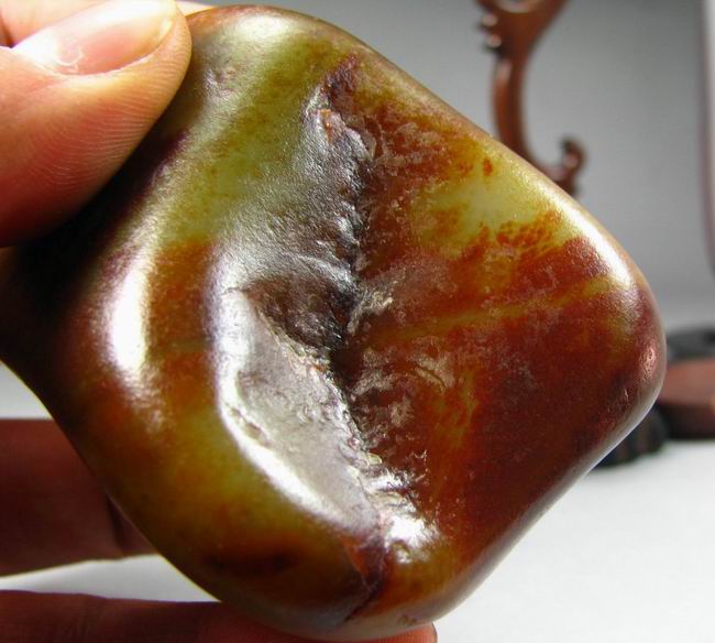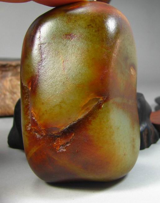 尺寸:89*59*49mm说明:肉质特别细腻,打灯基本无结构,很温润,稍盘即油,料子为新料子,表面碱土未去除,一面有大裂,裂为平行裂,籽的一端有石礓,对应的另一端有一道较宽的水线,底质为清白,色正不闷,整体沁鲜艳的红皮,皮色为真皮,此籽的最大特点就是肉细。色正,皮色红艳,是个皮色做料。