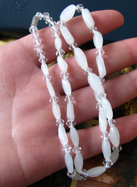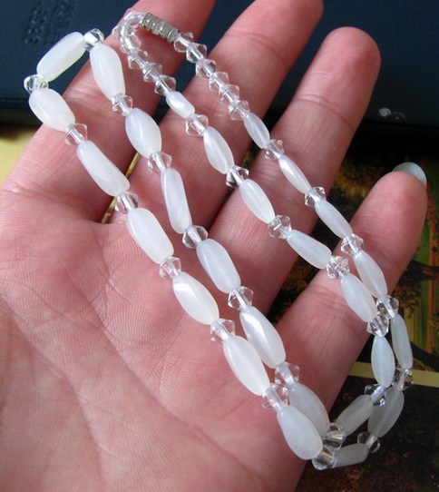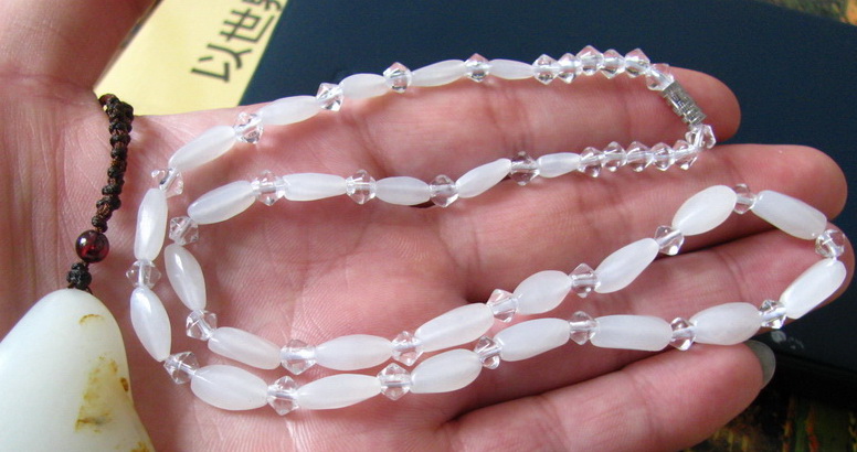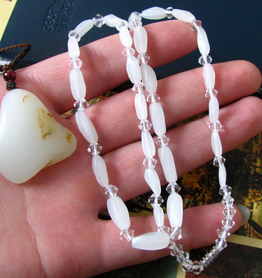 品质:和田玉青海羊脂白玉尺寸:周长约46mm说明:这个项链是老坑料子,肉质细腻,白度很到位,肉质密度好,完整,这种项链市面上价位有所差别就是在于肉质和白度上。