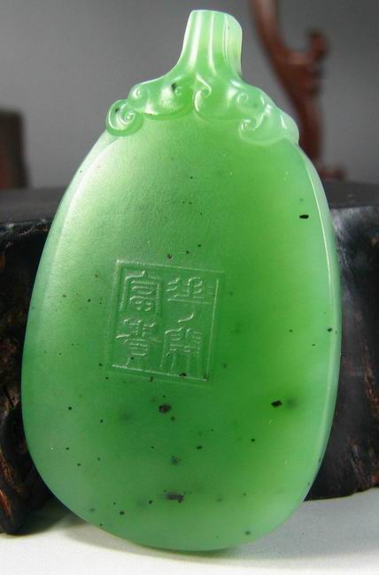 说明:肉质细腻,颜色鲜艳不闷,墨点较少,纯机工,牌型比较特别,设计精致,背面刻有花开富贵字样,适合直接佩戴。