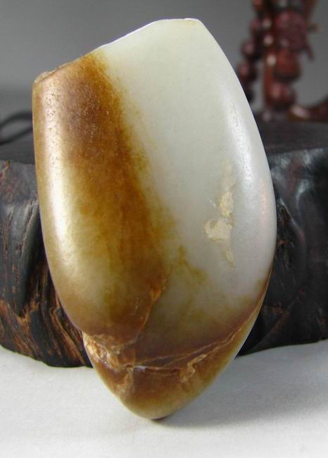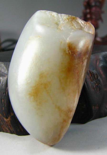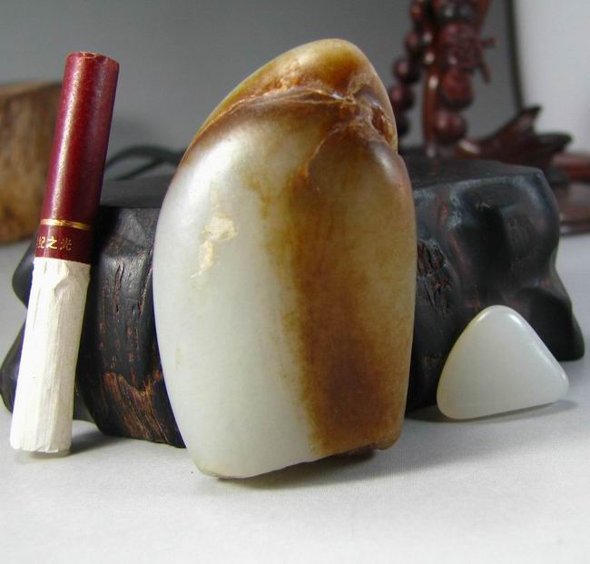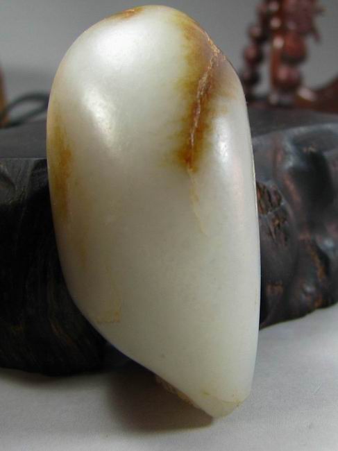 说明:牌子形,肉质细腻,质感油润,一侧聚棕色皮,底部带石根,大约三分之一的肉质可用,石根处有几道裂,做活可以借掉,一面稍有起皮,如图,喜欢diy的朋友可以用来俏色。