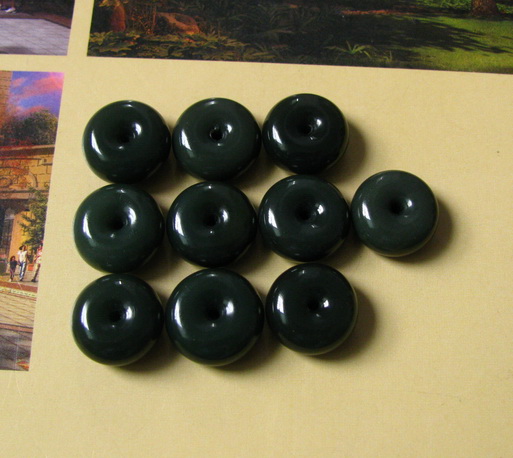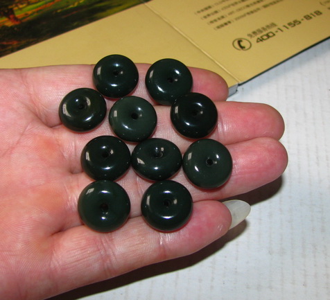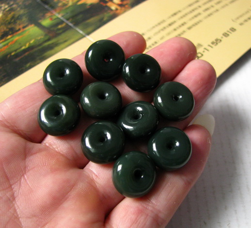 品质:和田玉青海黑青玉细料尺寸:15-8mm/枚数量:10枚说明:肉质特别细腻,是特级黑青玉细料,肉质干净,形状饱满,扣形圆润,没有残裂,可以包金,也可以编成手链。