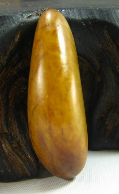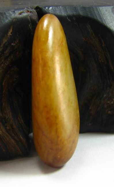 尺寸:34-18-10mm 说明:形状呈比较完美的水滴状,饱满,无裂伤,通身满沁秋梨皮,皮色老结,盘玩时温润感特别好,有种冒油的感觉。因皮色覆盖较多,仅局部微露肉,判断底质为白玉,白度应在II级,很熟糯,侧面打灯看肉质细腻,因皮色原因显得稍有结构,可直接把玩或佩戴。完美一口气的好皮色籽。