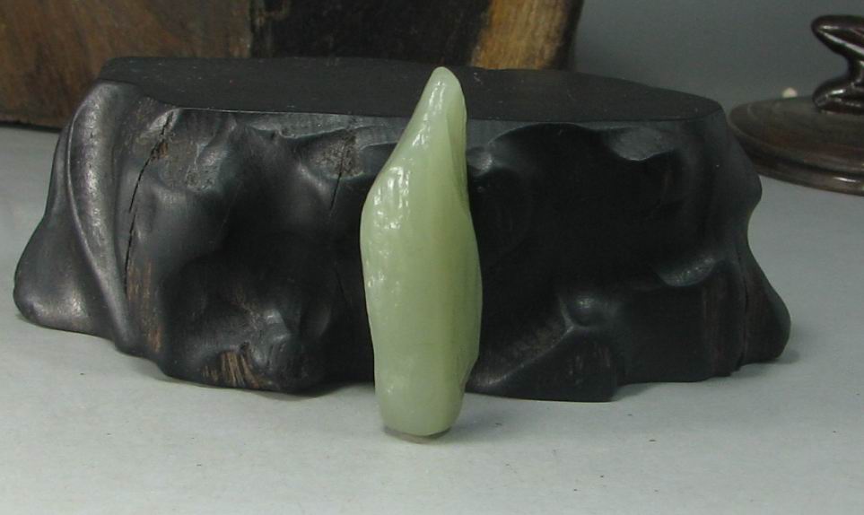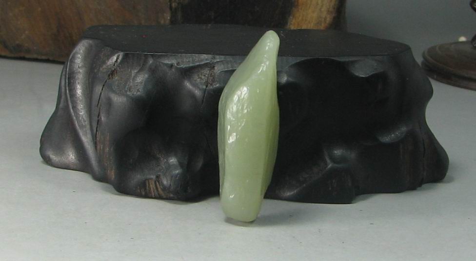 品质:和田玉青玉戈壁玉尺寸:44*22*13mm说明:完整一口气,肉质干净,细腻油润,色正不闷。一面有极小的风吹黑皮戈壁特征。