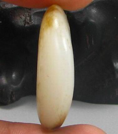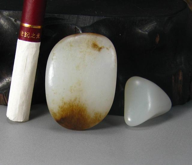 说明:籽形饱满一口气,牌子状,通身大部沁褐皮,皮色深浅浓淡变化自然,为真皮,局部有微裂,基本不影响整体美观效果。白度I级,且白的浓度特别好,很熟糯,侧灯肉质很细腻,稍有结构,把玩时温润感特别好,建议直接佩戴。