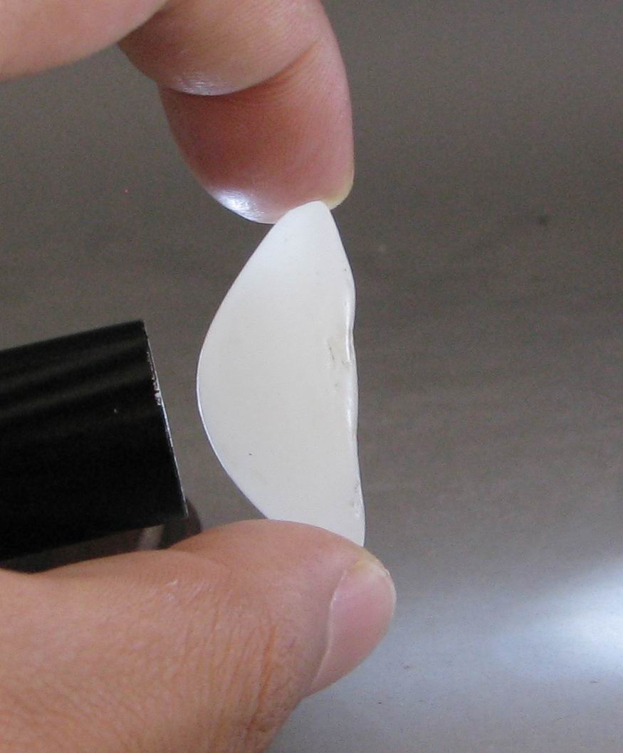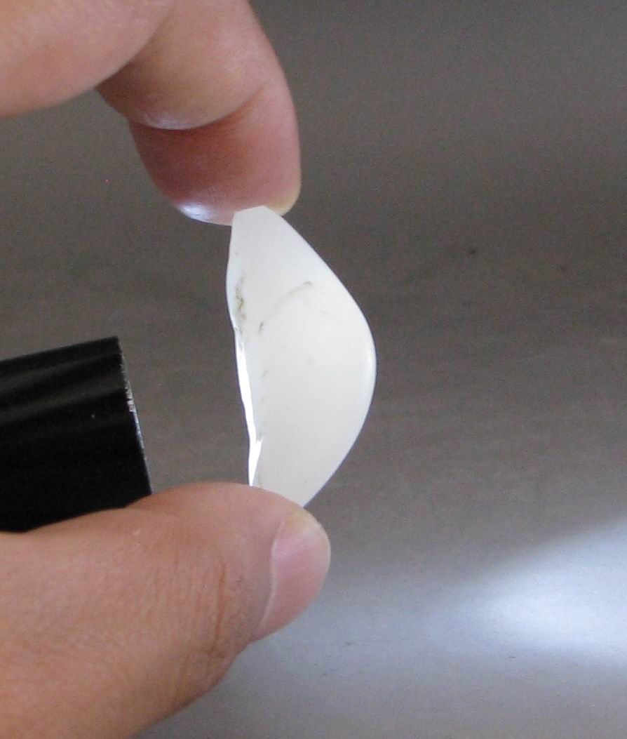 品质:和田玉白玉籽尺寸:32-14-10mm说明:原籽,籽形很独特,月牙状籽形,也很像狼牙,呵呵,白度为I级以上,白的浓度很好,打灯看肉质特别细腻,无结构,表皮毛孔微小,把玩时出油感强烈,温润性非常好,建议打金扣佩戴。