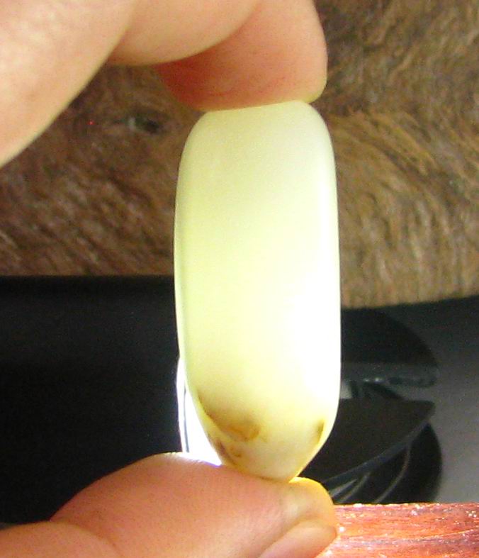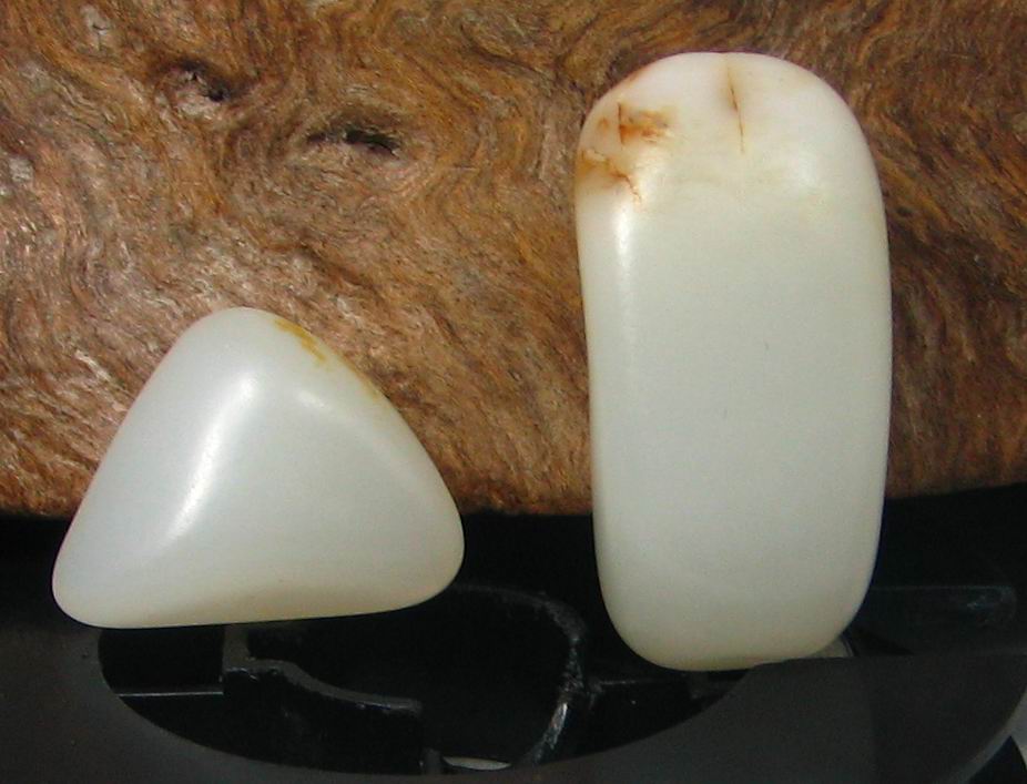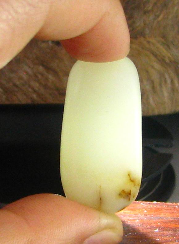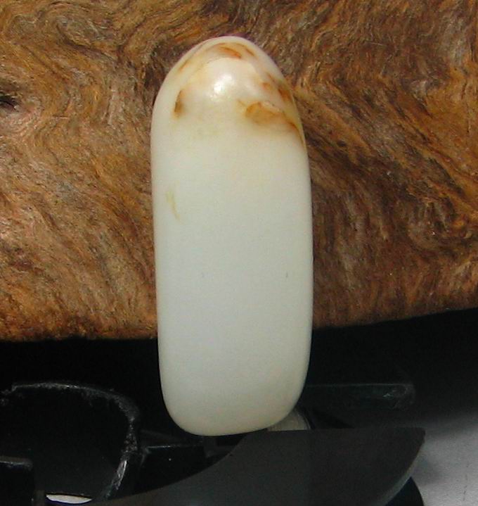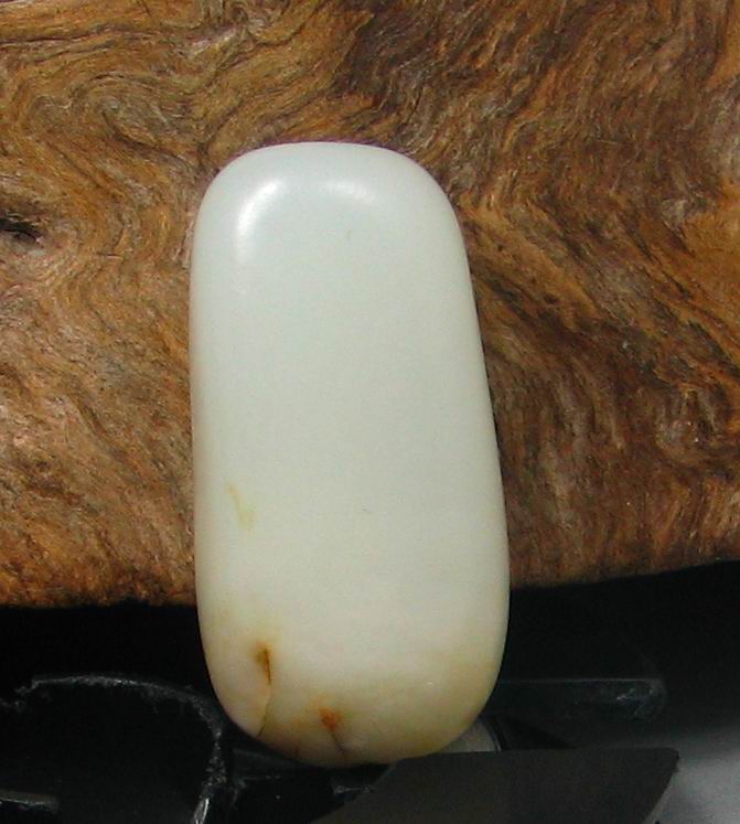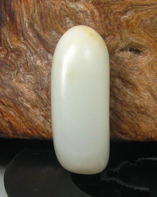 品质:和田玉白玉籽尺寸:29-15-12mm说明:长方状籽形,完整,饱满,一端稍含薄石礓,另一端肉质细到极致的一块料子,密度很高,打灯完全无结构,透光的效果就和白纸透过灯光的感觉一样,白度脂白,表皮毛孔小的就和磨光似的,把玩时温润感特别好,是个可玩可做的