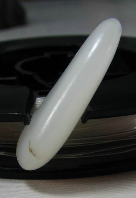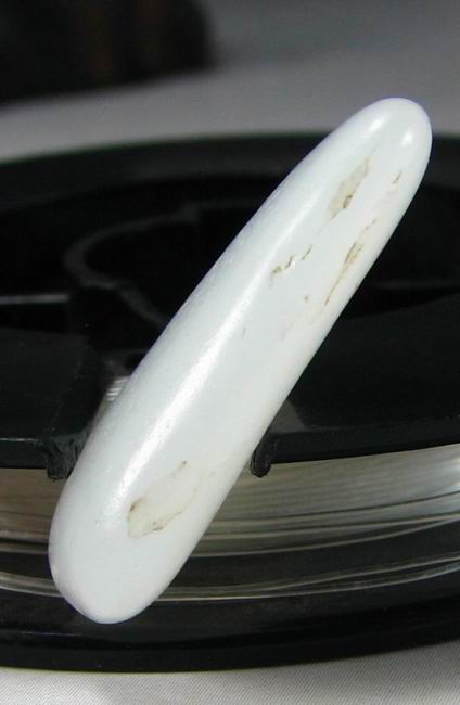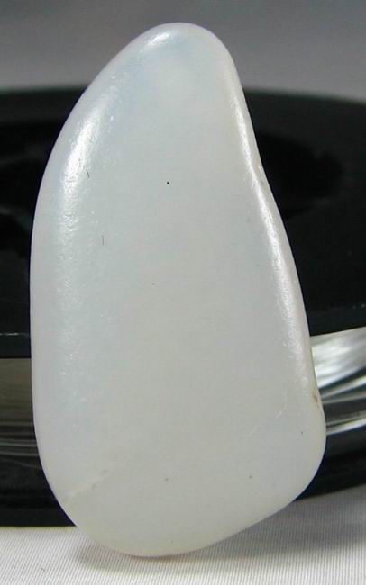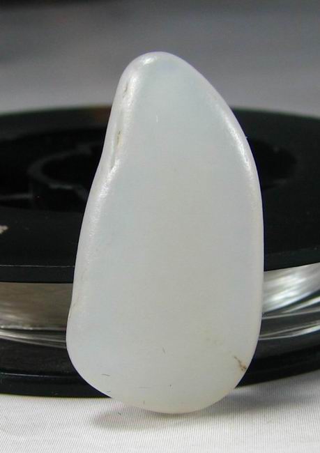 说明:小牌子状,玉质白度在I级以上,侧灯肉质特别细腻,无结构,把玩时温润度也很好,底部有一个小墨点,侧面有小绺,可做小坠子或戒面。